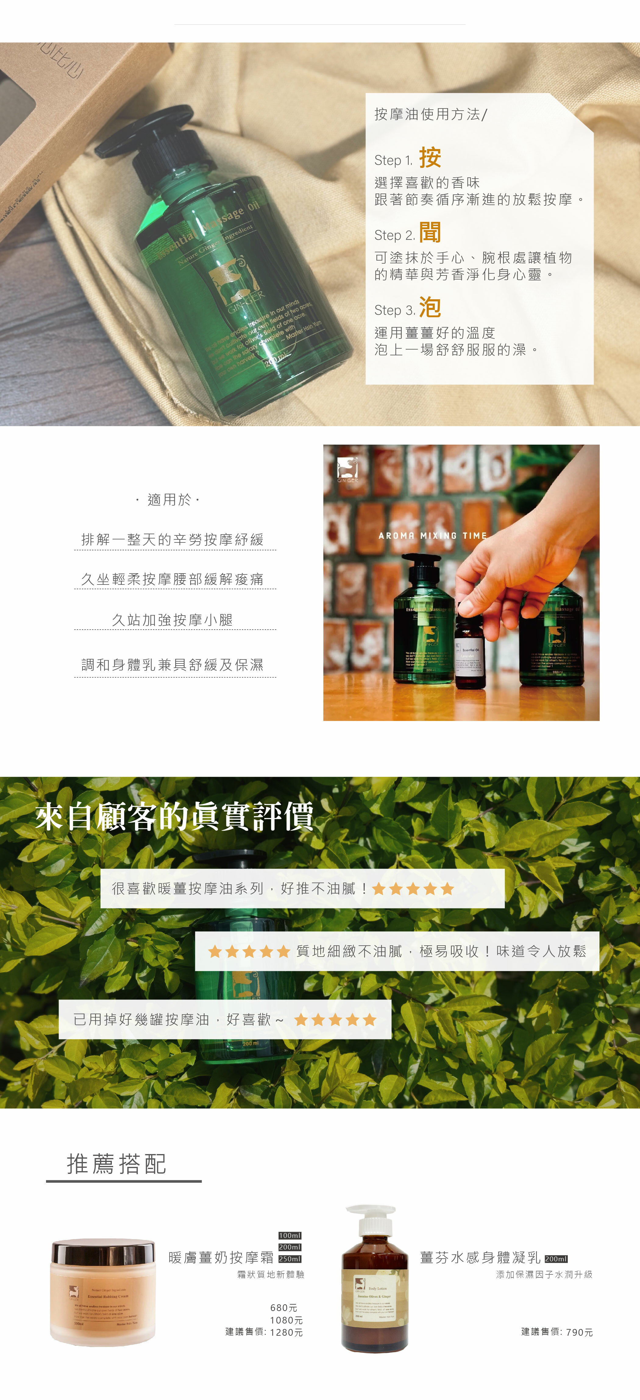 ◆主要成分:薑精油、雪松精油與植物性複方基底油